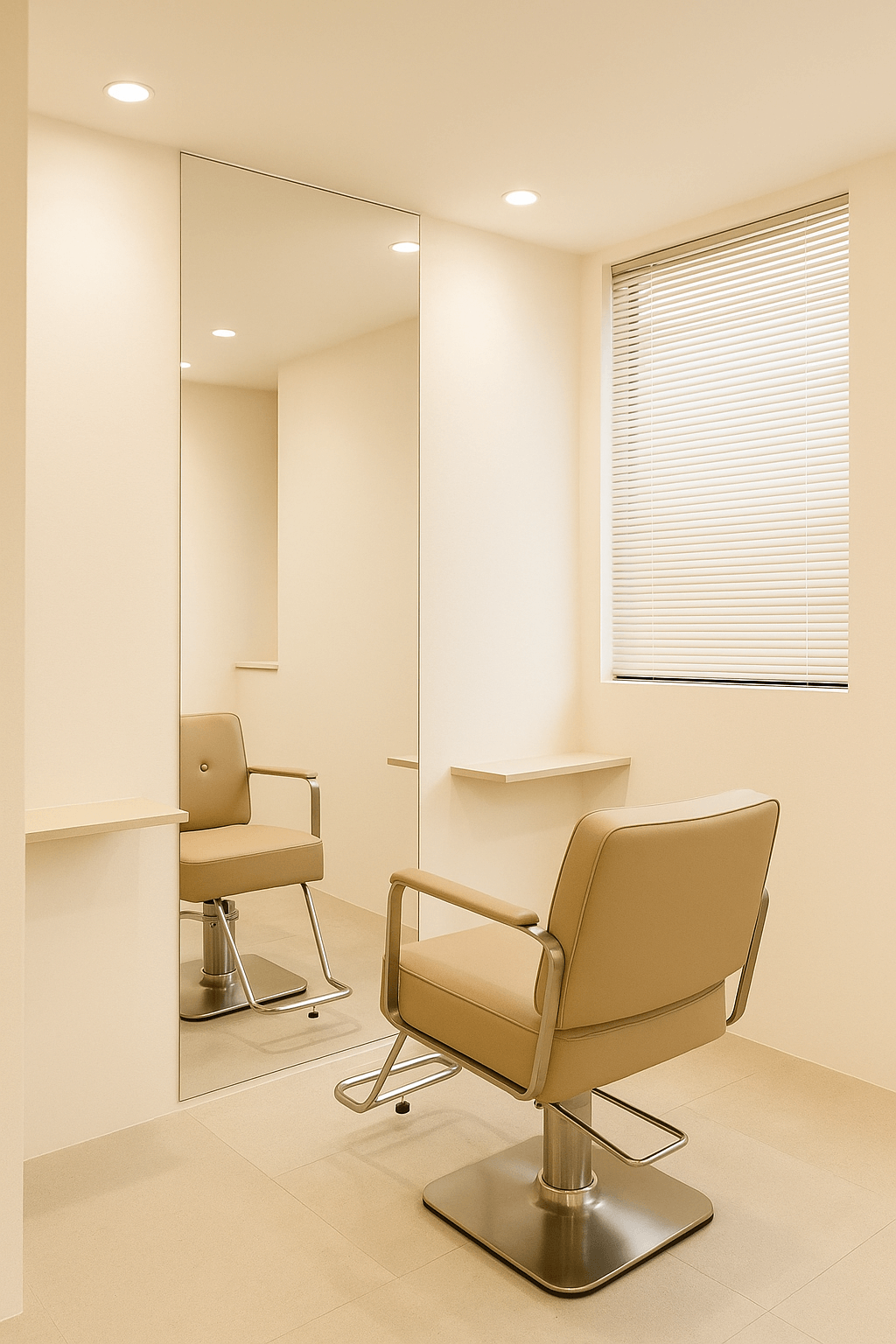 각자의 공간에서 자유롭게 일할 수 있는 공유미용실 시스템.